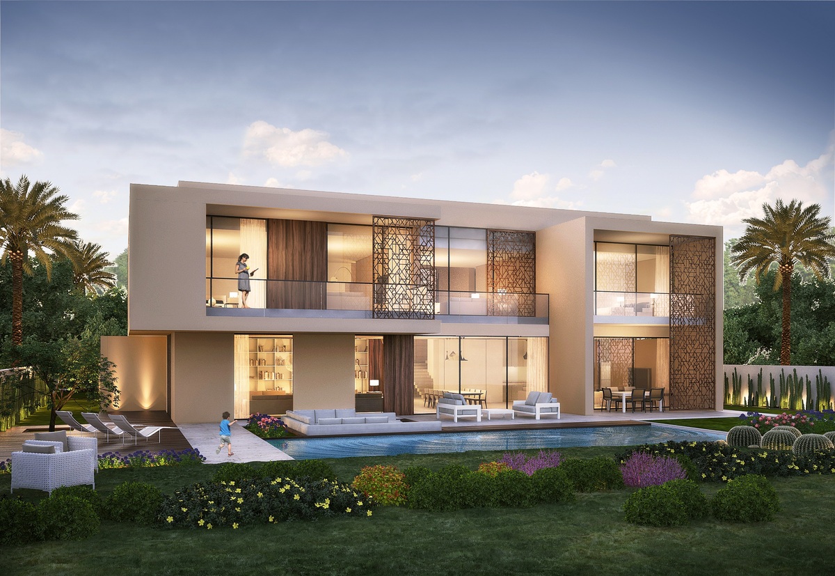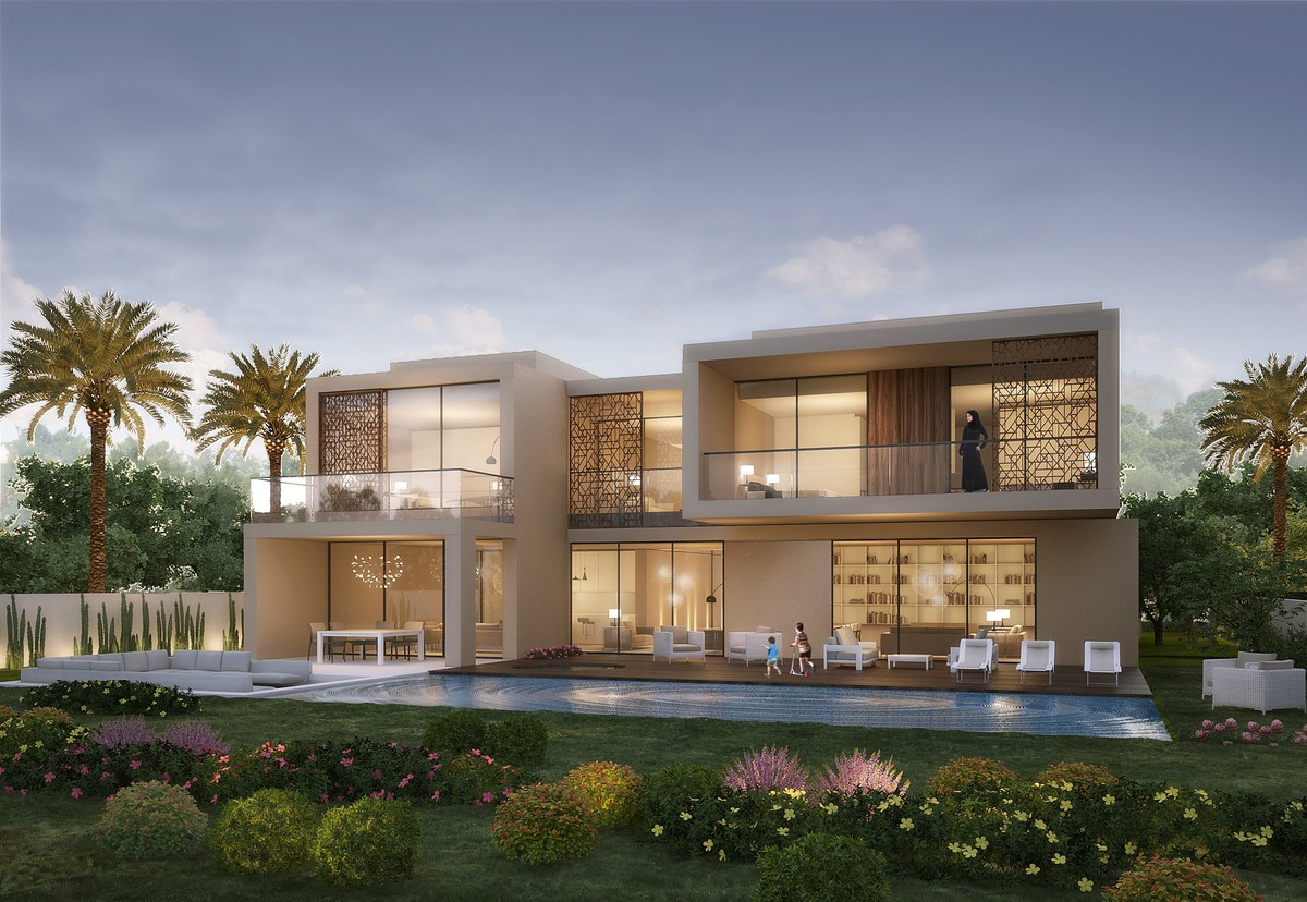 Numerous luxurious modern style villas strategically located across the area provide everything necessary for an ideal serene family-oriented lifestyle in a gated community, full of greenery and various leisure options. Residents will be in a walking distance of two world-class hotels, leading schools, healthcare centres and a 7-km boulevard with innovative leisure, retail and dining choices.